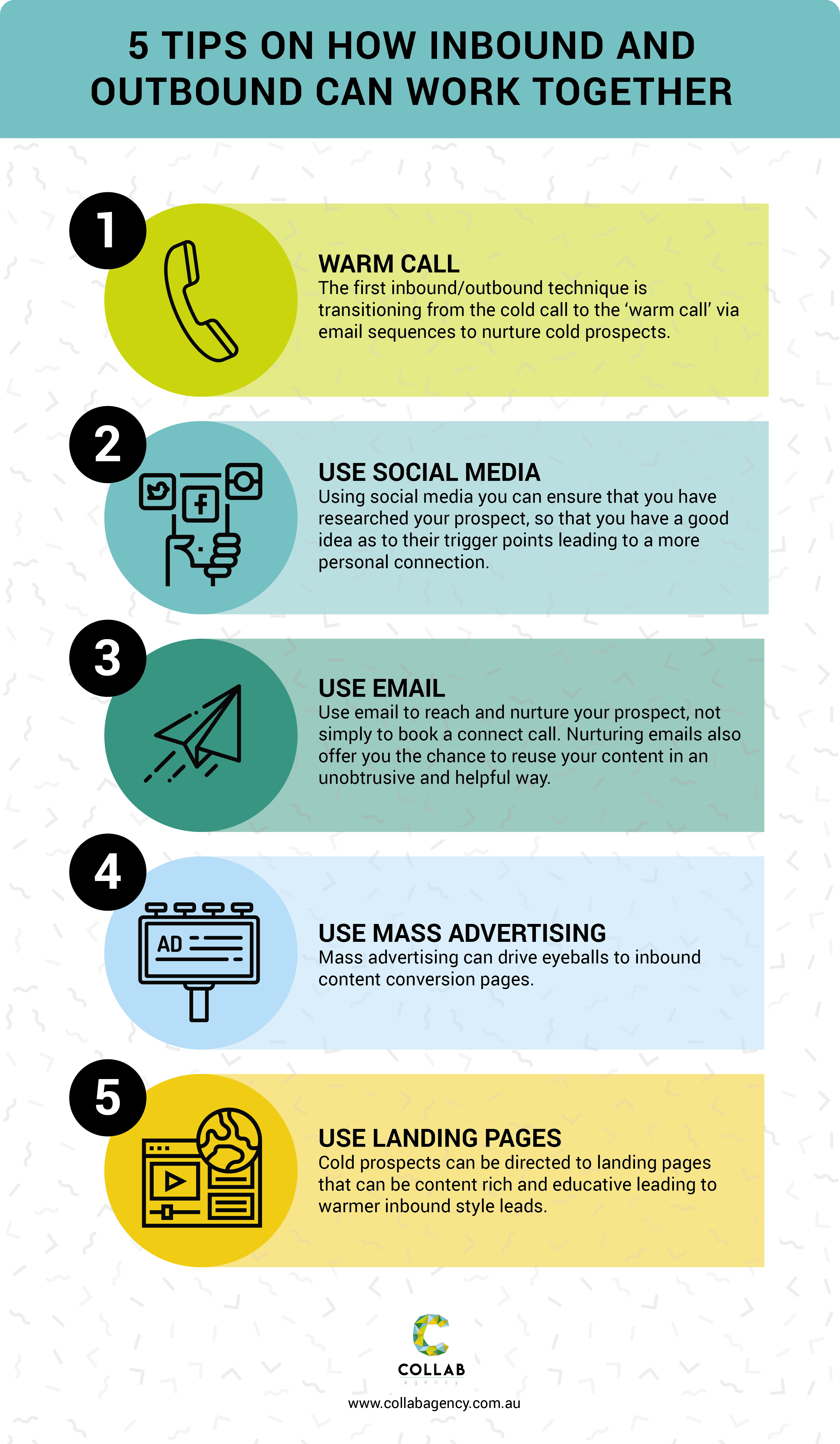 If your business creates great inbound content over time, your organic traffic and engagement will inevitably increase and so the need for excessive outbound reach will diminish. However, inbound and outbound will work well together in an ongoing sense, particularly if your business has embraced inbound processes and frameworks that will turn cold leads into warm leads.